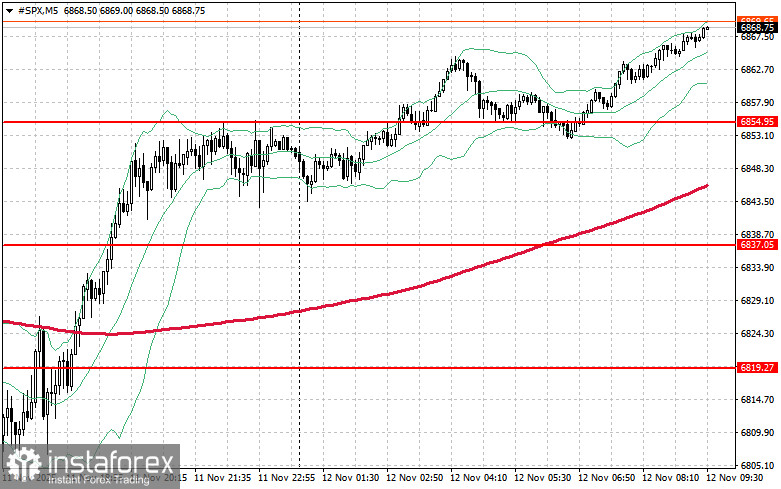 Что касается технической картины S&P500, то основная задача покупателей на сегодня будет заключаться в преодолении ближайшего сопротивления $6837. Это поможет показать рост, а также откроет возможность к рывку на новый уровень $6854. Не менее приоритетной задачей быков будет и контроль над $6874, что укрепит позиции покупателей. В случае движения вниз на фоне снижения спроса аппетита к риску, покупатели просто обязаны заявить о себе в районе $6819. Пробой быстро столкнет торговый инструмент назад на $6801 и откроет дорогу к $6784.