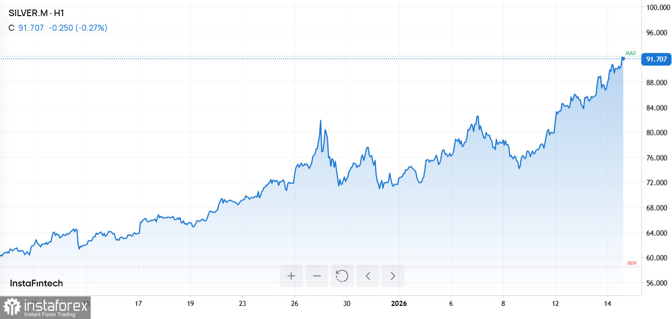 12 января серебро достигло исторического максимума – выше $88 за унцию, что стало самой высокой ценой за всю историю наблюдений. В последующие торговые сессии металл торговался в узком диапазоне $85–88. В то же время золото также демонстрирует уверенный рост, преодолев отметку в $4600 за унцию.