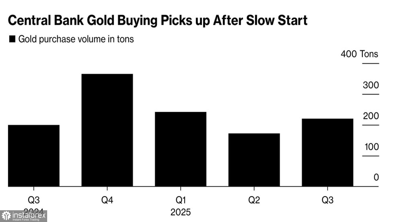 Увы, их активность постепенно снижается. По данным Всемирного золотого совета, после провального второго квартала центральные банки приобрели на 28% больше в третьем. Речь идет о 220 т. С января по сентябрь показатель составил 634 т. По прогнозам WGC, до конца 2025 он вырастет до 750-900 т. В 2022-2024 покупки слитков превышали 1000 т за год.