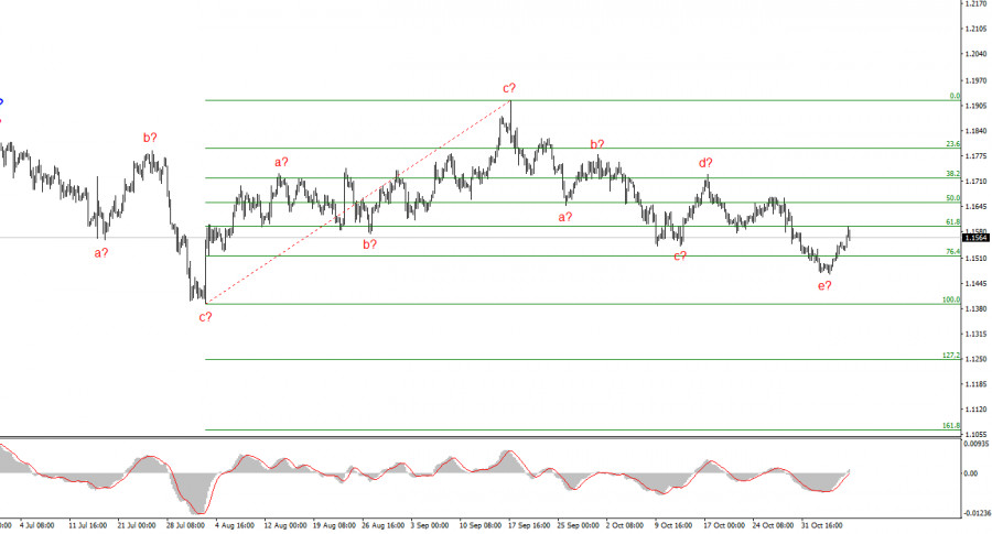 Исходя из проведенного анализа EUR/USD, я делаю вывод, что инструмент продолжает построение повышательного участка тренда. В последние несколько месяцев рынок взял паузу, но политика Дональда Трампа и ФРС остаются весомыми факторами падения американской валюты в будущем. Цели текущего участка тренда могут простираться вплоть до 25-й фигуры. В данное время продолжается построение коррекционной волны 4, которая принимает очень сложный и протяженный вид. Последняя ее внутренняя структура – a-b-c-d-e близка к своему завершению или уже завершена. Следовательно, сейчас я вновь рассматриваю покупки, так как все последние понижательные структуры имеют коррекционный вид.