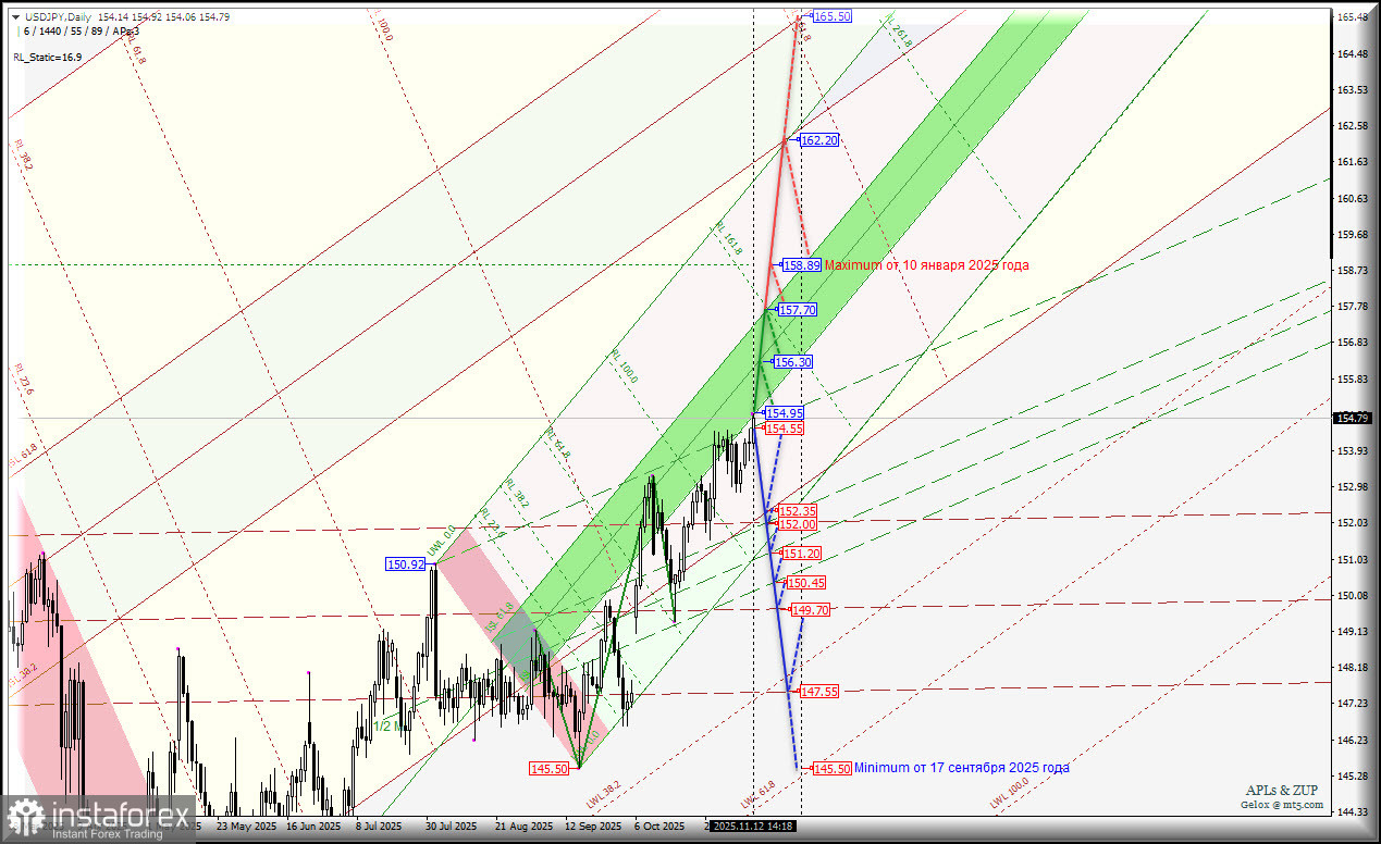 USD/JPY - Daily - обзор вариантов движения с 13 ноября 2025 г.