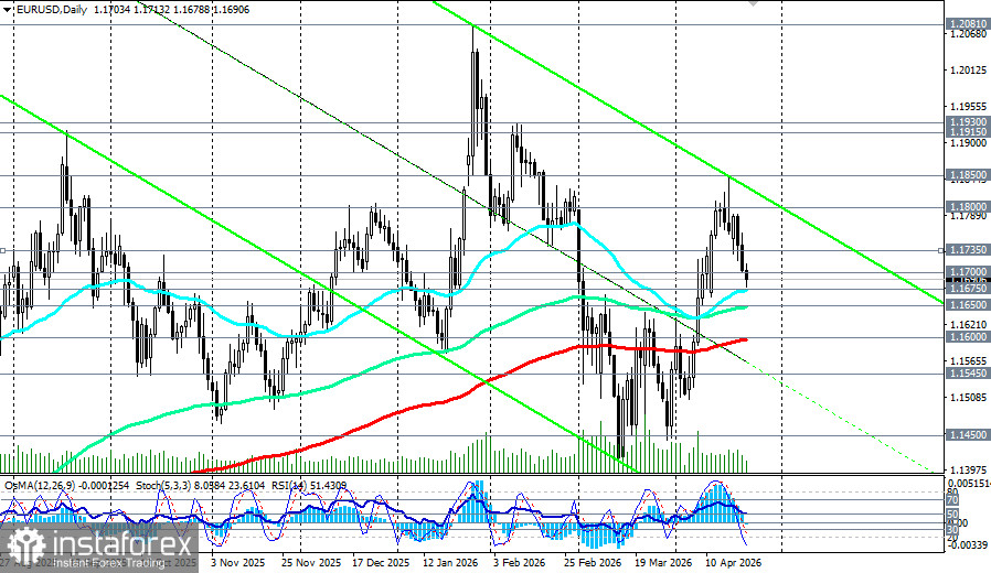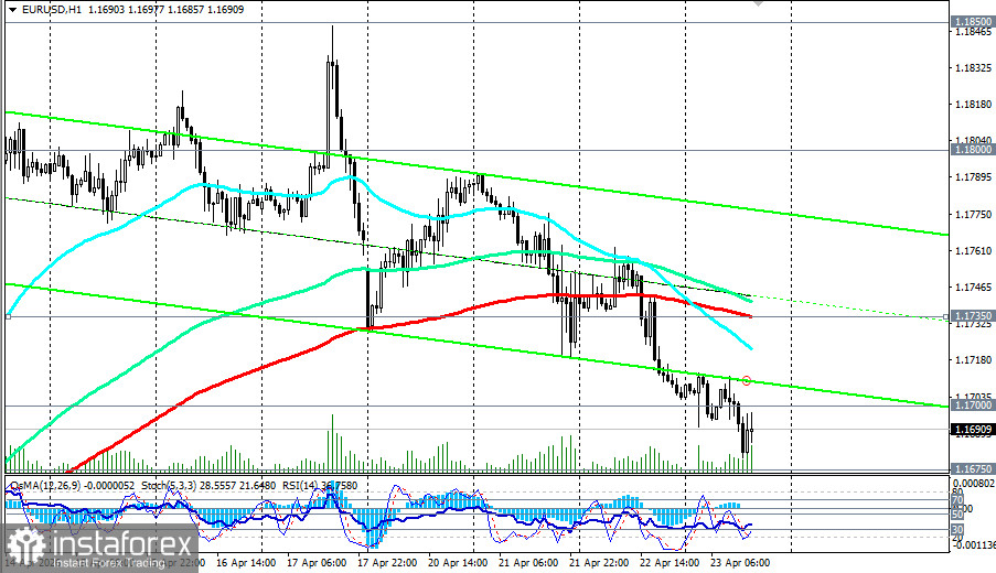 Пара EUR/USD вступает в завершение недели под давлением продавцов, развивая нисходящий импульс уже третий день подряд. На момент написания обзора, котировки консолидируются в районе 1.1690, чуть выше важного уровня поддержки 1.1675, обновляя минимумы с 13 апреля. Причина столь уверенного движения вниз — сочетание сразу нескольких негативных факторов: разочаровывающие данные по деловой активности в еврозоне, отсутствие прогресса в переговорах между США и Ираном, а также сохраняющиеся высокие цены на энергоносители.